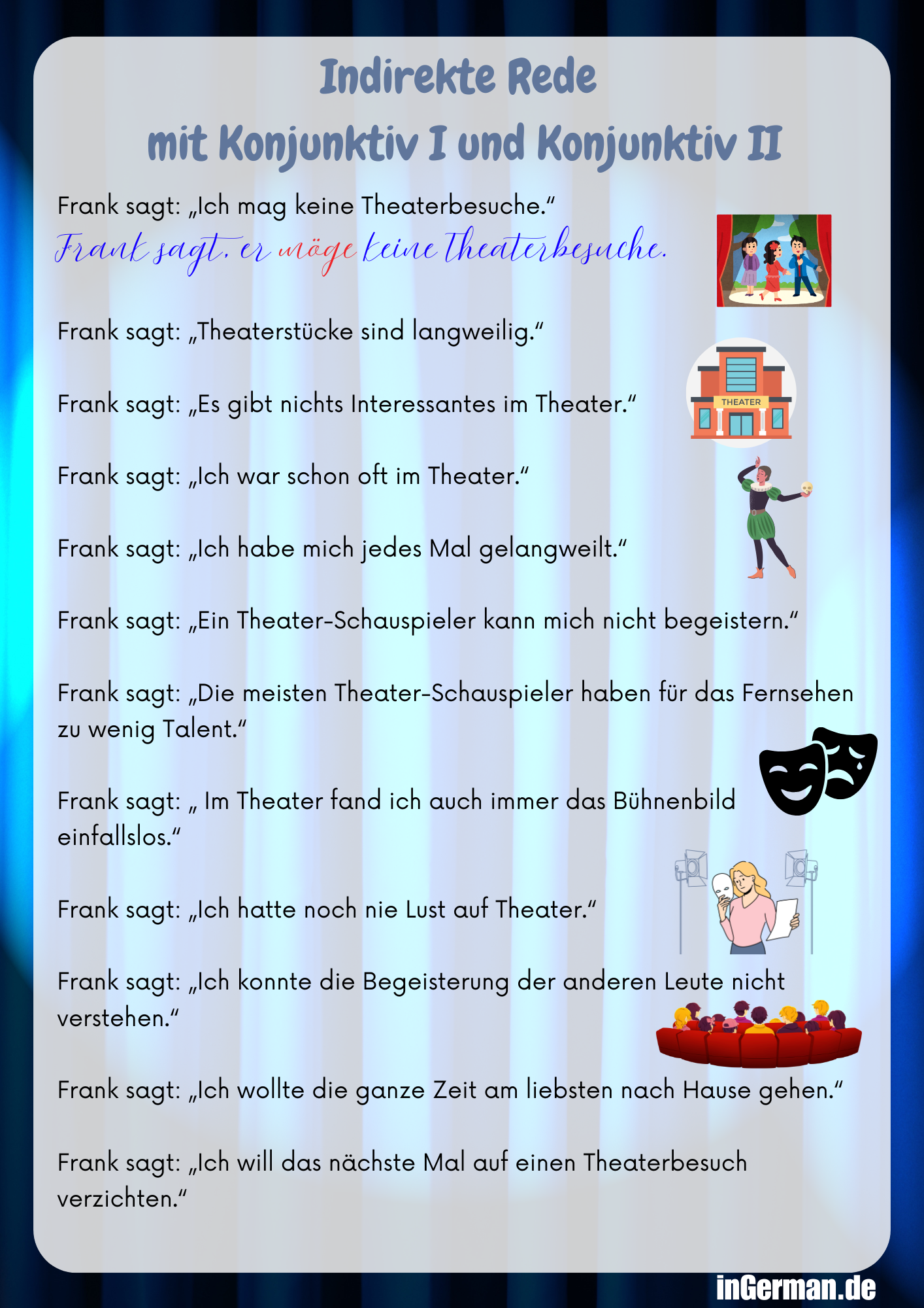 Indirekte Rede mit Konjunktiv I und Konjunktiv II (Theater)