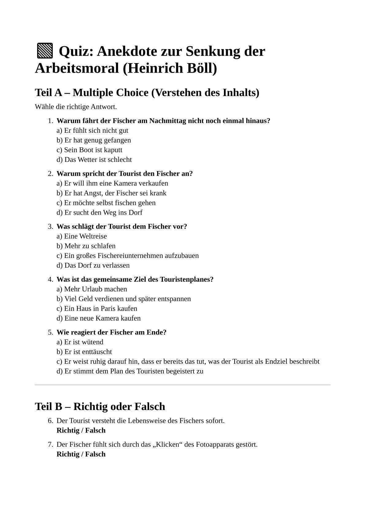 Lesen – Anekdote zur Senkung der Arbeitsmoral: Quiz