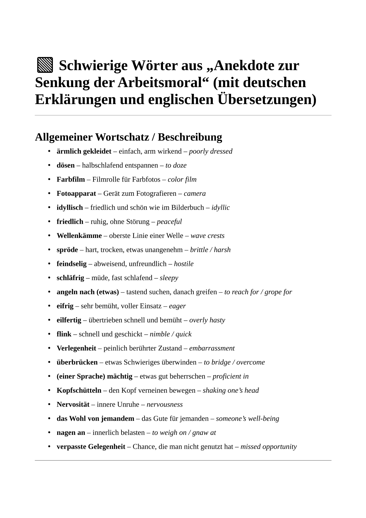 Lesen – Anekdote zur Senkung der Arbeitsmoral: Vokabeln